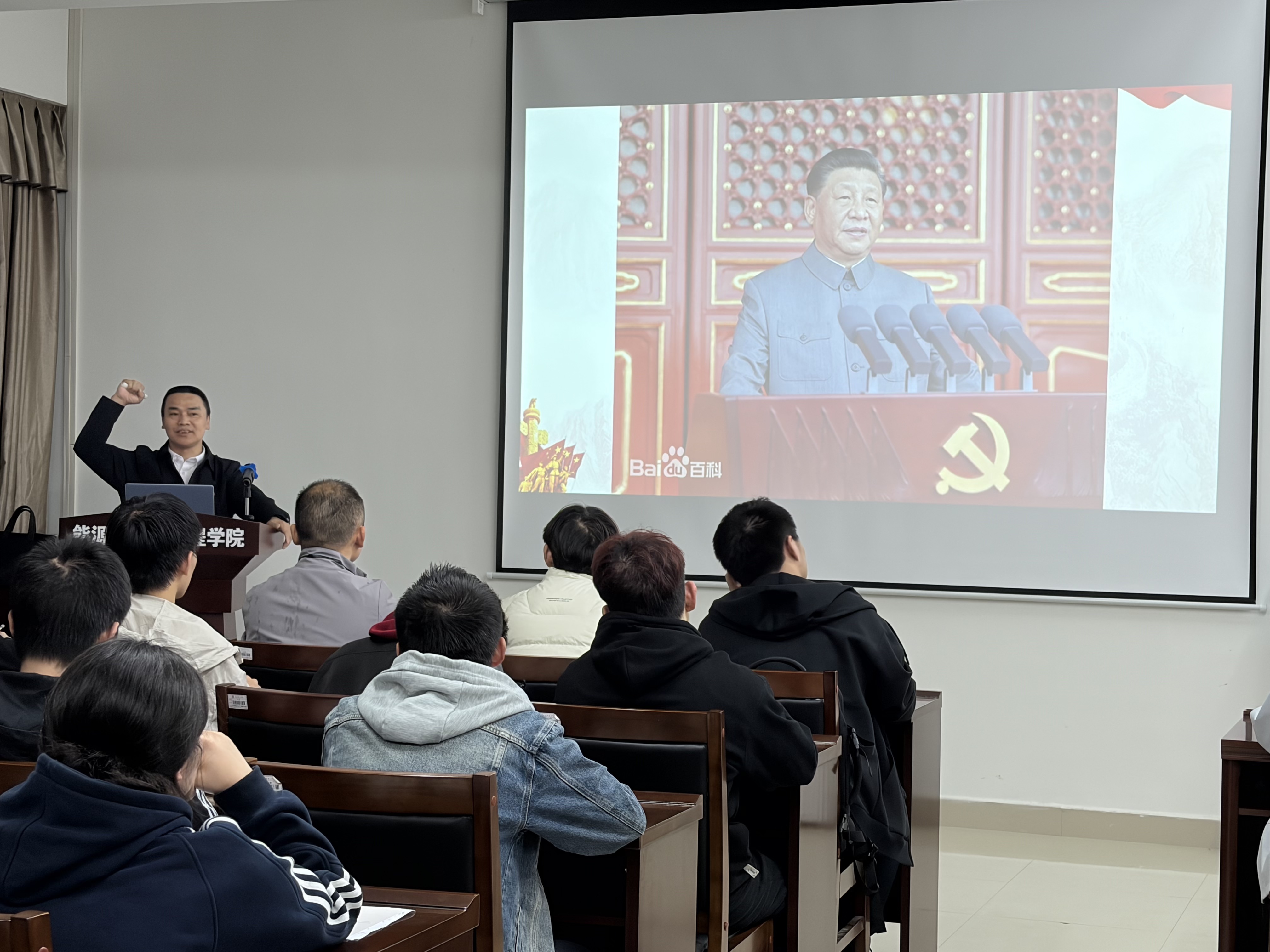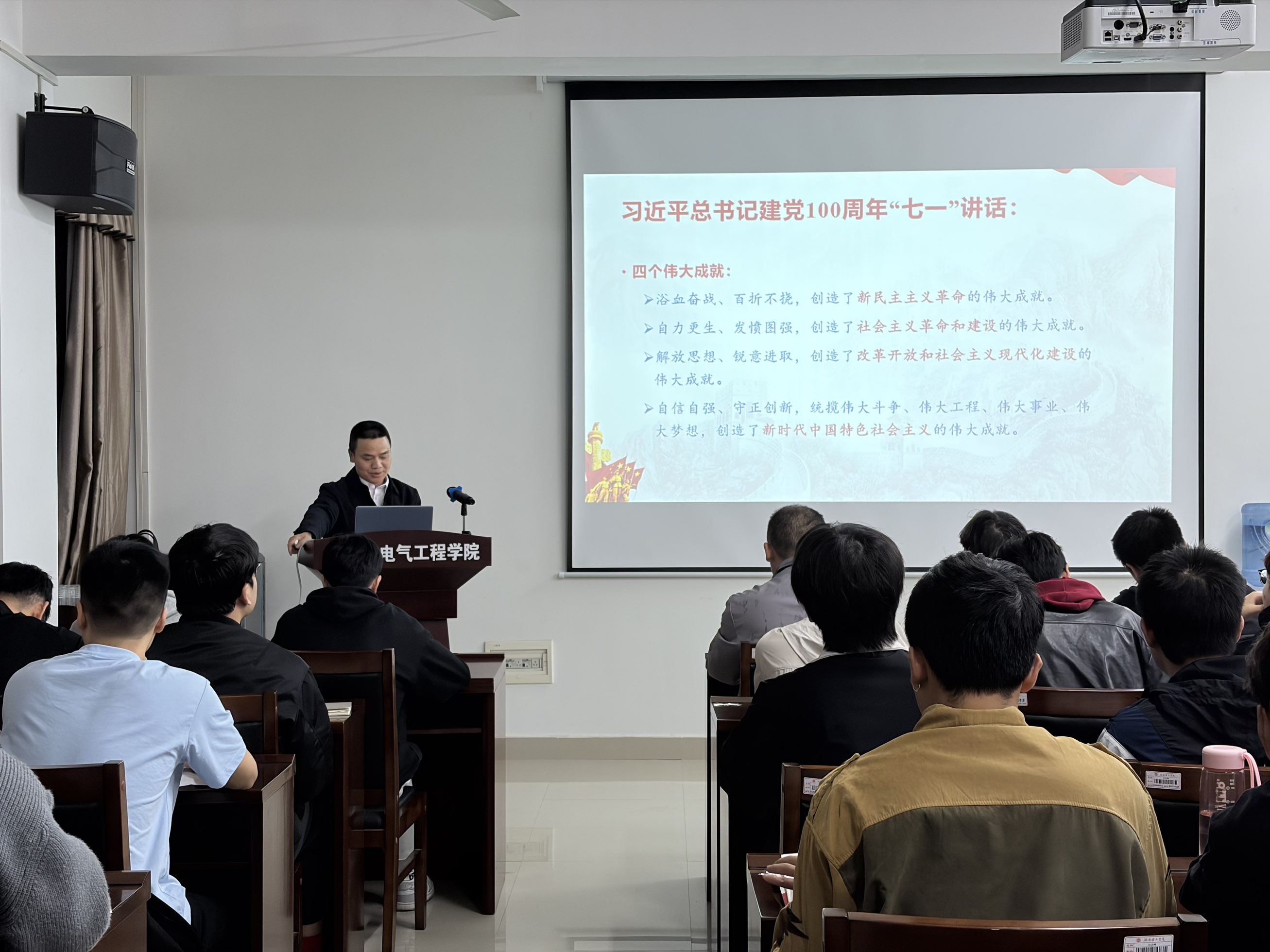 4月21日晚,学校党委委员、组织部部长胡文静受邀为能电学院分党校第1期入党积极分子培训班讲授题为《百年辉煌 风华正茂》的专题党课。能电学院全体学生党员及培训班全体学员聆听了报告。